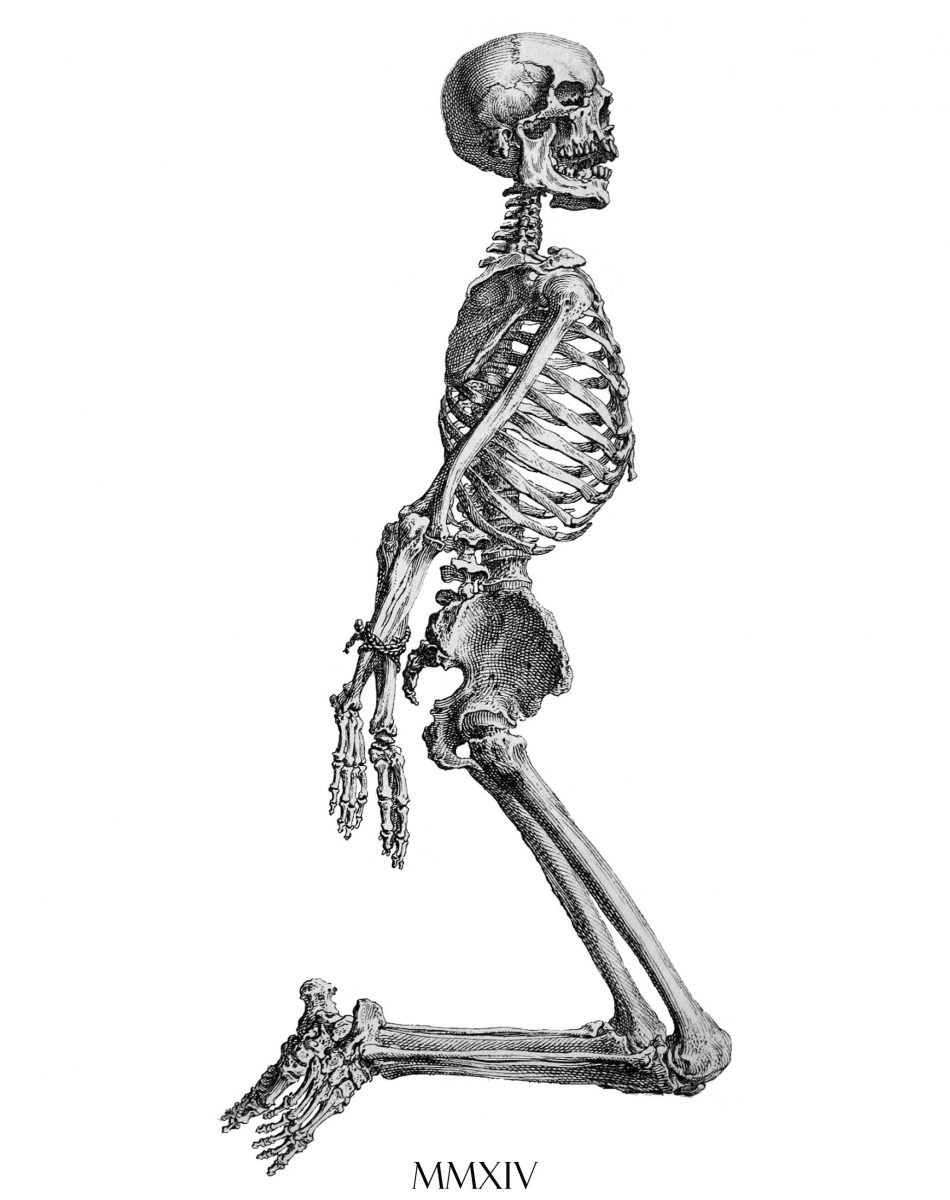 Have them at your knees with the Skeleton Bound T-Shirt. Featuring monochrome illustration of bounded skeleton centred on a super-soft regular style t-shirt.